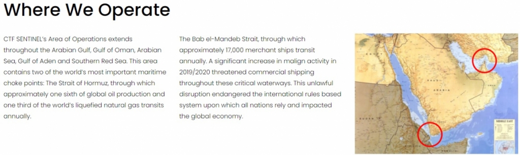 우리 정부는 2020년 1월 독자 파병 결정으로 이란과 갈등 가능성은 낮추면서도 '독자적 작전'이란 형식으로 작전 반경은 넓힌 상태다. 원래는 소말리아 아덴만 해상 1130km 구역에서 선박 호송작전에 주력했지만 오만만, 아라비아만 일대까지 총 3966㎞에 이르는 해역을 독자적으로 책임지기로 했다. IMSC와 관할지역이 겹치지만 백신은 못 맞은 것이다.