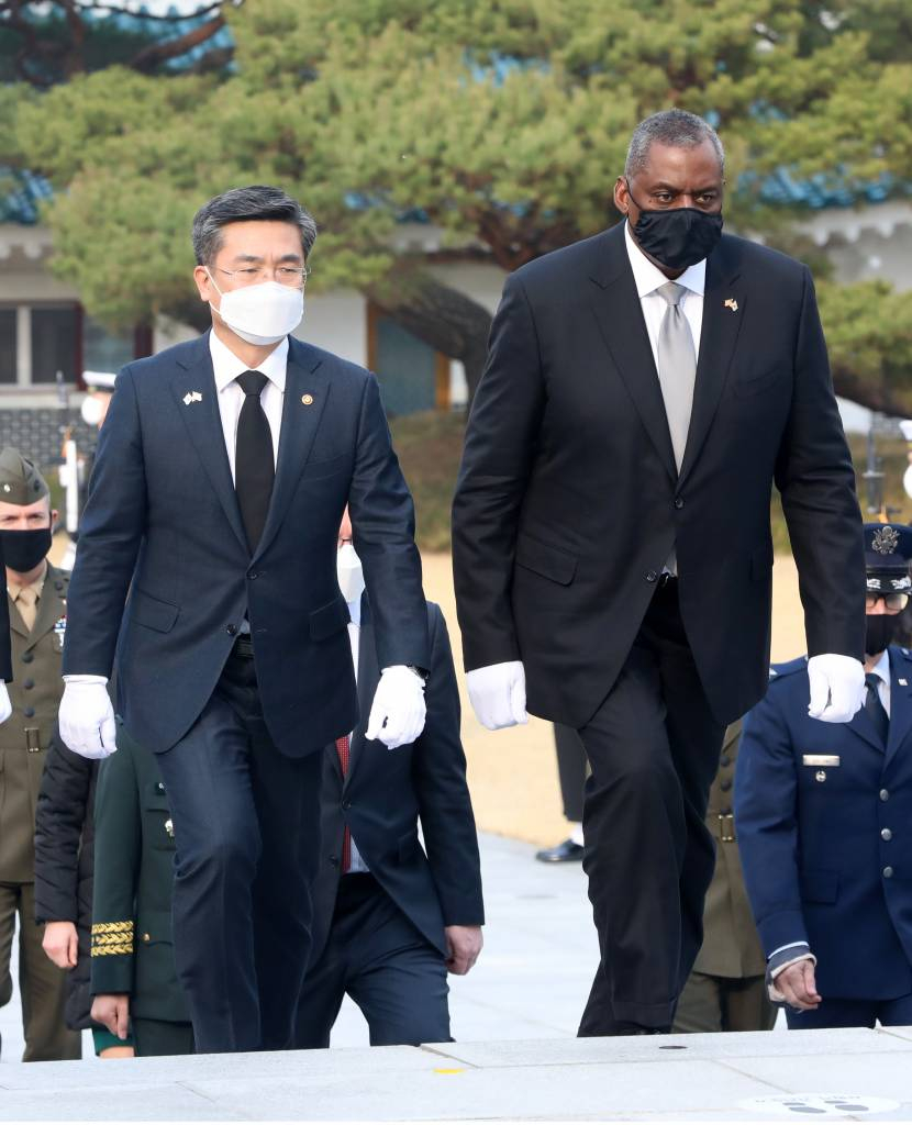 ![[서울=뉴시스]사진공동취재단 = 로이드 오스틴 미국 국방부 장관과 서욱 국방부 장관이 18일 오후 서울 동작구 국립서울현충원에서 현충탑 참배를 위해 이동하고 있다. 2021.03.18. photo@newsis.com](https://thumb.mt.co.kr/cdn-cgi/image/f=avif/21/2021/08/2021080909191058426_6.jpg)