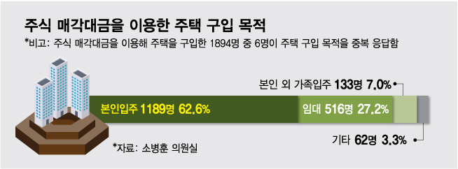 주식 매각대금으로 주택을 구입한 이들의 상당수는 본인이나 가족이 살 집을 마련하기 위해 주택을 구입한 것으로 나타났다. 하지만 임대수익을 올리기 위한 목적의 주택 구매자도 전체의 27.2%(516명)로 파악됐다.