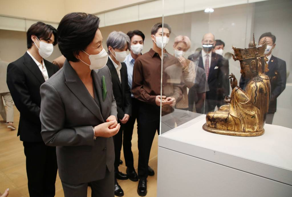 ![[뉴욕=뉴시스] 김진아 기자 = 문재인 대통령과 UN총회 참석차 뉴욕을 방문한 김정숙 여사가 20일(현지시간) 메트로폴리탄 미술관에서 미래문화특사인 그룹 BTS(방탄소년단)와 한국실을 관람하고 있다. 2021.09.21.](https://thumb.mt.co.kr/cdn-cgi/image/f=avif/21/2021/09/2021092108471582390_1.jpg)