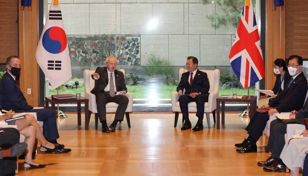 ![[뉴욕=뉴시스] 김진아 기자 = 문재인 대통령이 20일(현지시간) 미국 뉴욕 주유엔대표부 양자회담장에서 열린 한영 정상회담에서 보리스 존슨 영국총리의 발언을 듣고 있다. 2021.09.21.](https://thumb.mt.co.kr/cdn-cgi/image/f=avif/21/2021/09/2021092111514331898_1.jpg)