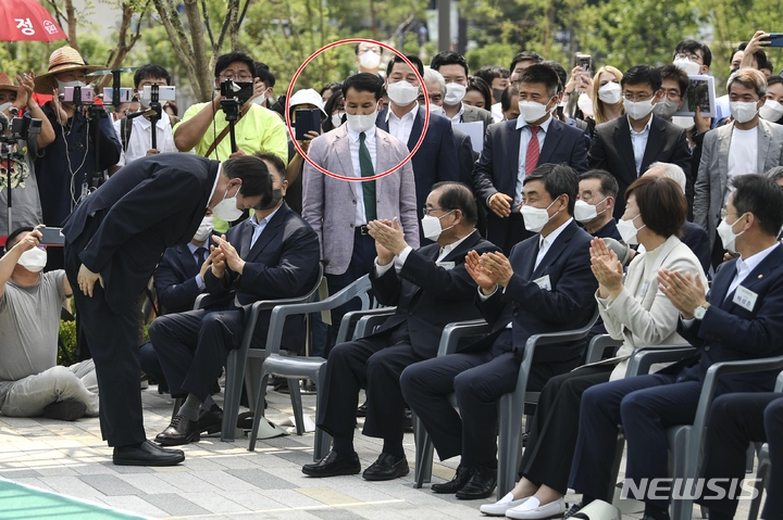 ![[서울=뉴시스] 윤석열 전 검찰총장이 지난 6월9일 서울 중구 남산예장공원에서 열린 독립운동가 우당 이회영 선생 기념관 개관식에 참석해 인사하고 있다. 빨간 동그라미 속의 인물은 항문침 전문가 이병환씨로 이날 윤 전 총장의 일정을 밀착 수행했다. (공동취재사진) 2021.10.06.](https://thumb.mt.co.kr/cdn-cgi/image/f=avif/21/2021/10/2021100706285190498_2.jpg)