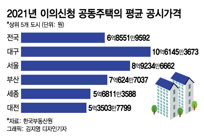 한편 올해 이의신청을 한 공동주택의 평균 공시가격은 대구가 약 10억6145만원으로 가장 높았고, 서울 8억9235만원, 부산 7억625만원으로 뒤를 이었다. 전국 평균은 6억8552만원이었다.