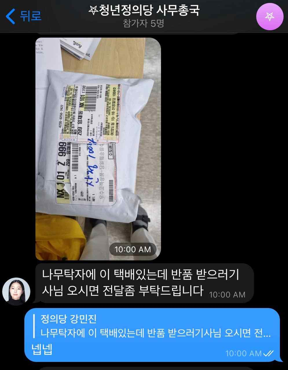 또 강 대표는 A씨가 중앙당 텔레그램 방에 보낸 메시지를 캡쳐해 와서 "이런 식으로 말을 하면 늦은밤에 청년정의당 대표가 일을 시킨다는 뒷말이 나올 수 있다"고 말하기도 했다.
