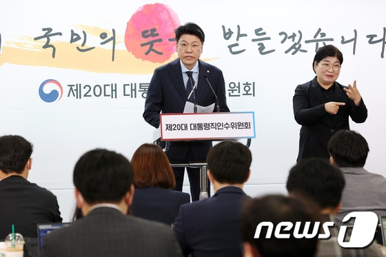 장제원 당선인 비서실장은 이날 서울 종로구 통의동 대통령직인수위원회 기자회견장에서 이같은 내용의 '새 정부 대통령실 인선'을 발표했다. 현행 청와대의 3실(비서실·정책실·국가안보실)·8수석(정무·국민소통·민정·시민사회·인사·일자리·경제·사회) 구조를 2실(비서실·국가안보실), 5수석(경제·사회·정무·홍보·시민사회) 체제로 간소화했다.