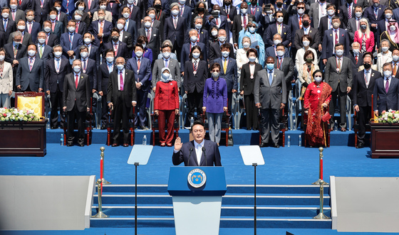 윤석열 대통령이 10일 국회의사당에서 열린 제20대 대통령 취임식 취임사에서 "자유, 인권, 공정, 연대의 가치를 기반으로 국민이 진정한 주인인 나라, 국제사회에서 책임을 다하고 존경받는 나라를 위대한 국민 여러분과 함께 반드시 만들어 나가겠다"고 밝혔다.