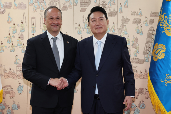 윤 대통령은 "더글라스 엠호프 부통령 부군께서 축하 사절 대표단을 이끌고 방한해 주신 것에 대해서 대단히 감사하다. 대리대사님, 장관님, 그리고 두 분 의원님, 작가님을 비롯한 대표단분들 모두 환영한다"며 "미 정부 의회, 문화계 등 각계를 대표하는 분들로 경축사절단 파견해 주신 것에 대해 정말 고맙게 생각한다"고 말했다.