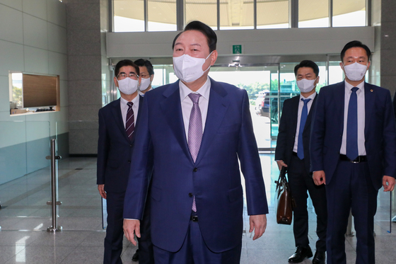 [the300]윤석열 대통령, 청사 앞서 기자들 만나 "통합을 어떤 가치 지향하며 할 것이냐 얘기한 것"