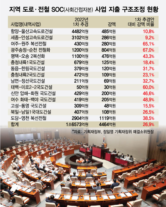 6?1 지방선거를 앞둔 정치권엔 비상이 걸렸다. 도로?전철 등 SOC 사업은 지역 주민들의 관심이 집중되는 사업으로 여야는 관련 예산 확보를 위해 심혈을 기울였다. 오는 19일부터 진행되는 국회 예산결산특별위원회 회의에서 이들 사업에 대한 감액 여부와 규모가 핵심 쟁점이 될 전망이다.