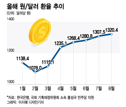 서울외환시장에 따르면 지난 23일 원/달러 환율은 1409.3원에 거래를 마쳤다. 전 거래일(1409.7원)보다는 0.4원 내렸지만 여전히 1400원을 상회하는 수치다. 환율이 1400원을 넘은 것은 장 마감 기준으로 글로벌 금융위기 직후인 2009년 3월20일(1412.5원) 이후 13년6개월만이다.