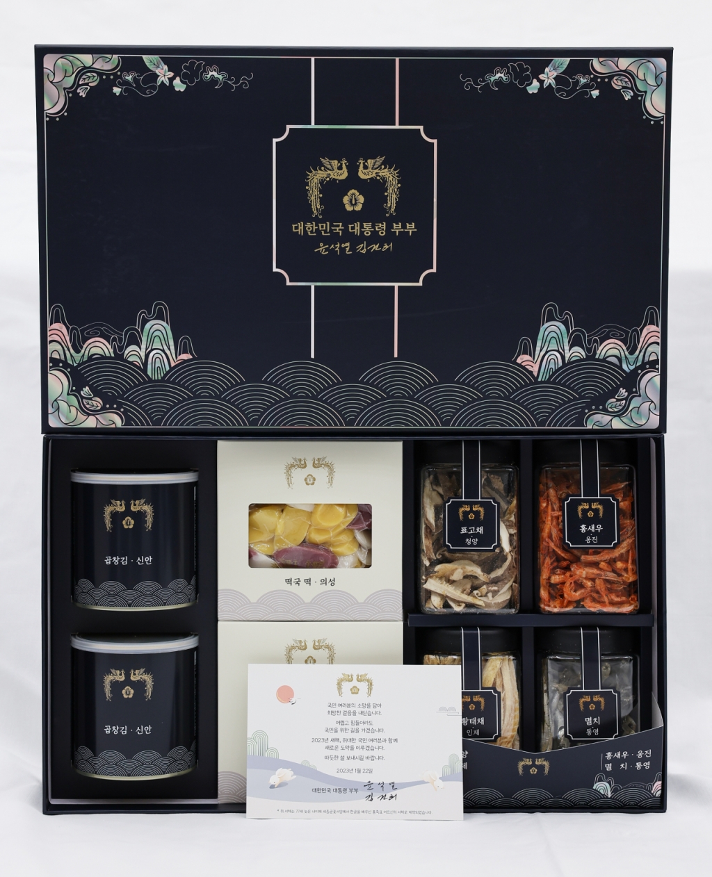 윤석열 대통령과 김건희 여사가 취임 후 첫 설 명절을 맞이해 각계 인사에게 지역 특산물이 담긴 선물(사진)을 전달했다.