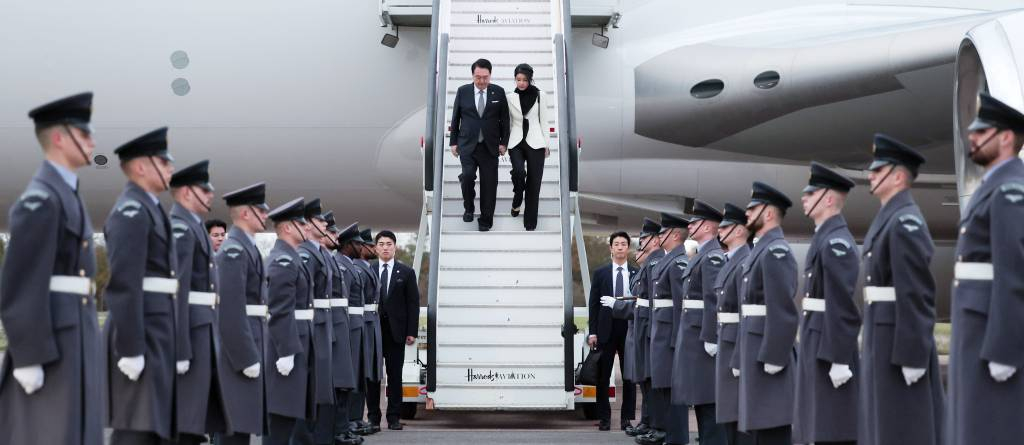 ![[런던=뉴시스] 전신 기자 = 영국을 국빈 방문한 윤석열 대통령과 부인 김건희 여사가 20일(현지시간) 런던 스탠스테드 국제공항에 도착해 공군 1호기에서 내리고 있다. (공동취재) 2023.11.21.](https://thumb.mt.co.kr/cdn-cgi/image/f=avif/21/2023/11/2023112107244827404_1.jpg)