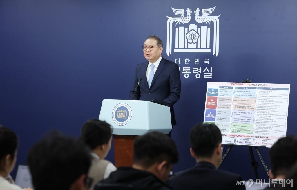 ![[서울=뉴시스] 조수정 기자 = 박상욱 대통령실 과학기술수석비서관이 3일 서울 용산 대통령실 청사에서 R&D 개혁 등 관련 브리핑을 하고 있다. 2024.04.03. chocrystal@newsis.com /사진=조수정](https://thumb.mt.co.kr/cdn-cgi/image/f=avif/21/2024/04/2024040310443075663_1.jpg)
