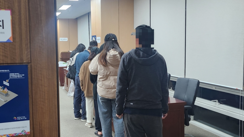 중앙선거관리위원회에 따르면 이날 오전 9시 기준 전국 본투표율은 6.9%로 집계됐다. 전체 유권자 4428만11명 중 307만4727명이 투표에 참여했다. 직전 총선 본투표율 8.0%보다 1.1%p(포인트) 낮다.