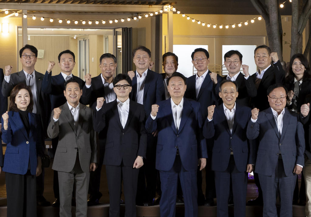 윤석열 대통령과 한동훈 대표 등 국민의힘 지도부가 24일 저녁 식사를 함께 했다. 관심이 쏠렸던 윤 대통령과 한 대표간 독대는 이뤄지지 않았다.