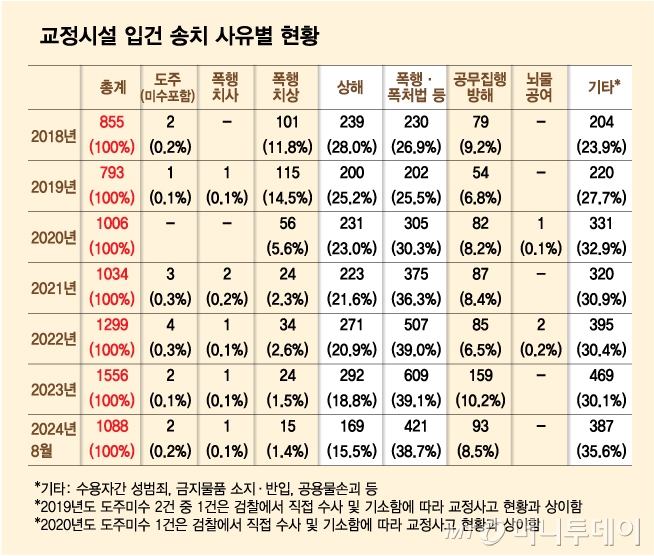 [the300]교도소·구치소 등 교정시설 입건송치 건수 매년 증가…올 8월 벌써 1000건 돌파