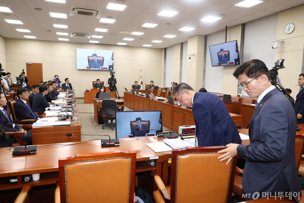 ![[서울=뉴시스] 조성봉 기자 = 국회 환경노동위원회의 증인 철회 의결로 퇴장당한 김문수 고용노동부 장관이 10일 서울 여의도 국회 환경노동위원회 국정감사장을 떠나고 있다. 2024.10.10.suncho21@newsis.com /사진=조성봉](https://thumb.mt.co.kr/cdn-cgi/image/f=avif/21/2024/10/2024101017353267055_1.jpg)