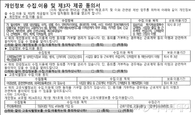 14일 국회 환경노동위원회 소속 박홍배 더불어민주당 의원실에 따르면 HD현대중공업은 지난해 11월 하청노동자를 대상으로 개인정보 수집·이용 및 제3자 제공 동의서를 받았다. 해당 동의서는 △생체정보(안면 등 생체인식정보 포함) △병력 △산업재해 이력 △주민등록번호 △운전면허번호 △여권번호 △외국인등록번호 등을 사측에 제공할 것에 대해 동의하는 지 여부를 묻는다.