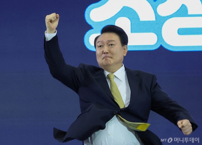 ![[고양=뉴시스] 조수정 기자 = 윤석열 대통령이 3일 경기도 고양시 킨텍스에서 열린 2023 대한민국 소상공인대회 개막식에서 격려사를 마친 뒤 어퍼컷 세리머니를 하고 있다. (대통령실통신사진기자단) 2023.11.03. chocrystal@newsis.com /사진=조수정](https://thumb.mt.co.kr/cdn-cgi/image/f=avif/21/2024/11/2024110522082854673_1.jpg)