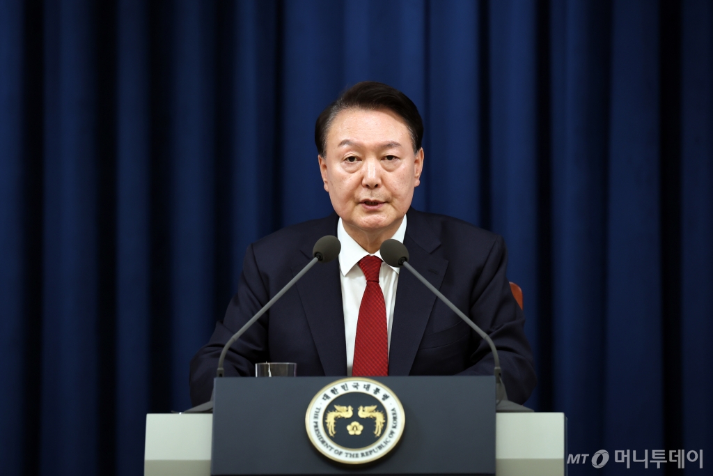 ![[서울=뉴시스] 조수정 기자 = 윤석열 대통령이 3일 서울 용산 대통령실 청사에서 긴급 대국민 특별 담화를 발표하고 있다. (사진=대통령실 제공) 2024.12.03. chocrystal@newsis.com /사진=조수정](https://thumb.mt.co.kr/cdn-cgi/image/f=avif/21/2025/01/2025010121152721486_1.jpg)
