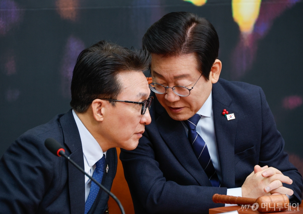 ![[서울=뉴시스] 조성우 기자 = 이재명(왼쪽 네 번째) 더불어민주당 대표가 6일 오전 서울 여의도 국회에서 열린 중진의원 간담회에서 추미애(왼쪽 세 번째) 의원 발언을 듣고 있다. 2025.01.06. xconfind@newsis.com /사진=조성우](https://thumb.mt.co.kr/cdn-cgi/image/f=avif/21/2025/01/2025010713503245110_3.jpg)
