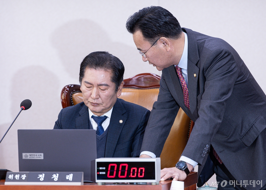 정 위원장은 주 의원이 법사위에서도 오전과 유사한 문제를 제기하자 "헌법재판관 누구와도 만나거나 통화한 바 있다"며 "정확히 기억이 나진 않지만 (헌법재판소가 윤 대통령의) 내란 행위에 대해 (형법상) 내란죄로 할 것인지, 헌법(적 책임만 물을 것인지) 청구인(국회) 측에서 입장을 정리해달란 취지의 요청이 있던 것으로 안다"고 설명했다.