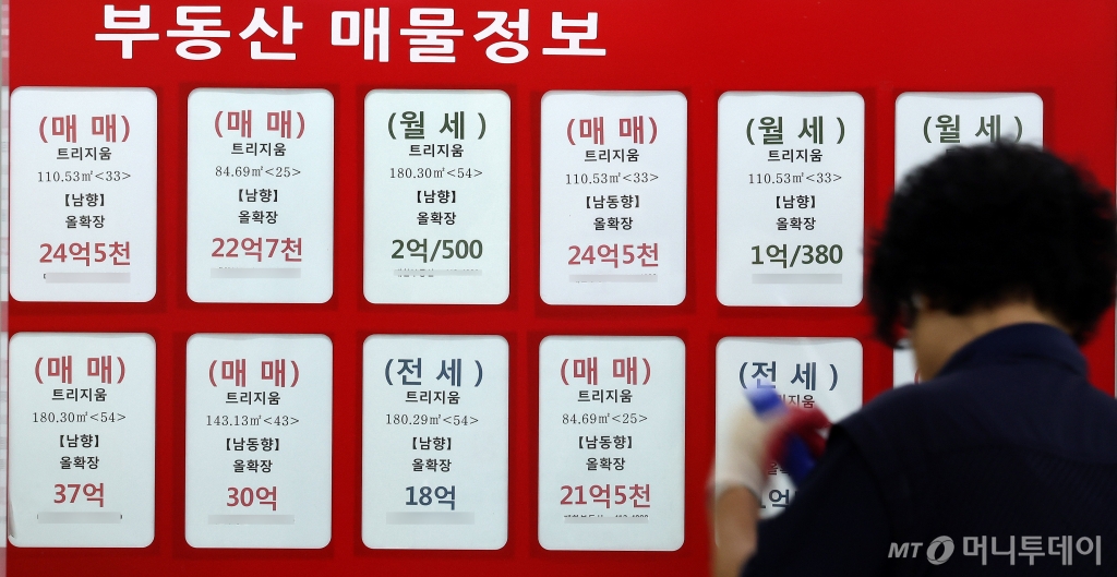 ![[서울=뉴시스] 추상철 기자 = 14일 오전 서울 송파구의 한 공인중개사사무소에 소형 평형 매물 가격이 게시돼 있다. 14일 KB부동산 월간 주택가격 동향에 따르면 10월 강남지역(한강이남 11개구) 소형 아파트(전용면적 60㎡이하) 평균 매매가격은 전월 대비 733만원 오른 9억715만원을 기록했다. 올해 들어 서울 부동산 시장이 상승세를 보이면서 1년 10개월 만에 9억원대를 돌파한 것으로 나타났다. 2024.11.14. scchoo@newsis.com /사진=추상철](https://thumb.mt.co.kr/cdn-cgi/image/f=avif/21/2025/01/2025012105111659118_1.jpg)