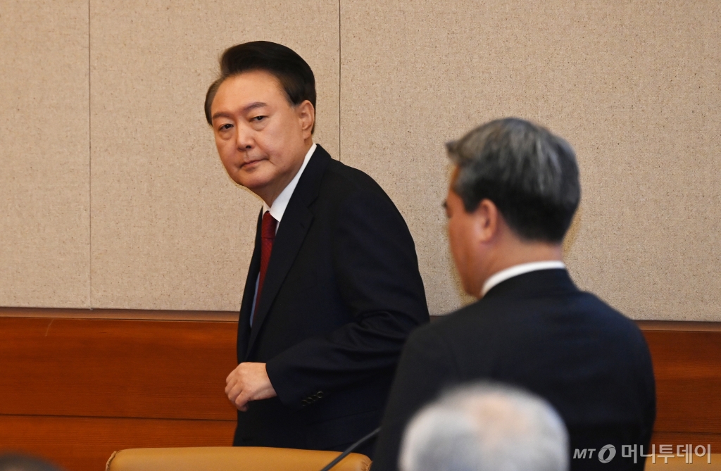 ![[서울=뉴시스] 사진공동취재단 = 윤석열 대통령이 6일 서울 종로구 헌법재판소 대심판정에서 열린 탄핵 심판 6차 변론에 출석하고 있다. 2025.02.06.](https://thumb.mt.co.kr/cdn-cgi/image/f=avif/21/2025/02/2025020713094055188_1.jpg)