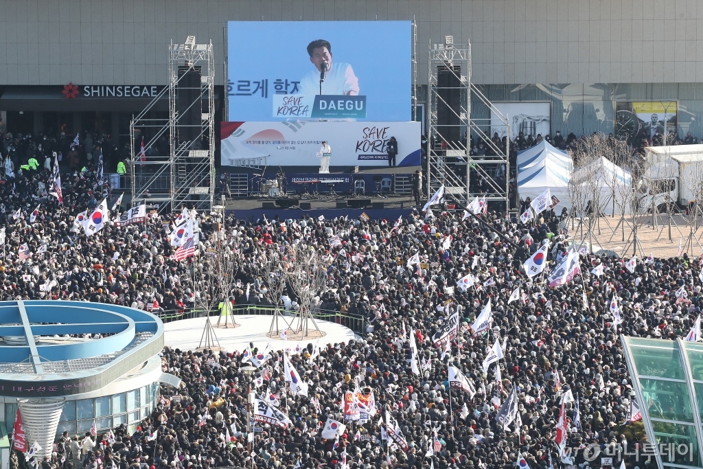 한편 지난 주말 대구에서 열린 탄핵반대 집회엔 경찰 추산 5만명 이상이 참석했다. 탄핵 찬성 집회도 매주 서울 광화문을 비롯해 전국 곳곳에서 열리고 있다.