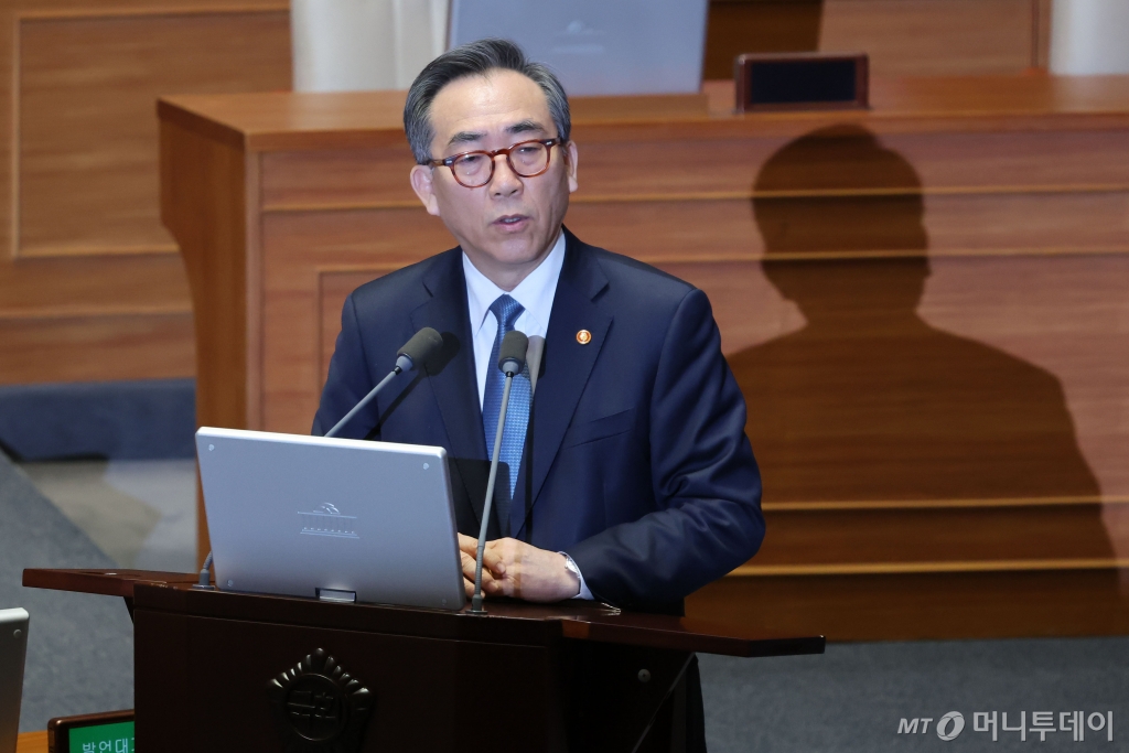 ![[서울=뉴시스] 권창회 기자 = 조태열 외교부 장관이 12일 오후 서울 여의도 국회에서 열린 제422회 국회(임시회) 제4차 본회의 정치·외교·통일·안보 분야 대정부질문에서 윤상현 국민의힘 의원의 질의에 답하고 있다. 2025.02.12. kch0523@newsis.com /사진=권창회](https://thumb.mt.co.kr/cdn-cgi/image/f=avif/21/2025/02/2025021217005644517_1.jpg)