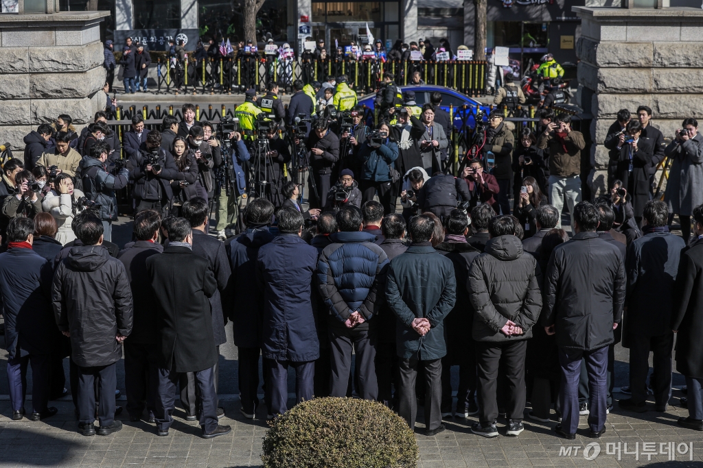 국민의힘 소속 현역 의원들이 윤석열 대통령에 대한 탄핵 심판 사건을 심리 중인 헌법재판소를 향해 "정치적 고려를 떠나 오직 헌법과 법률에 기반한 판단을 내려야 한다"며 "절차적 정당성을 철저히 지켜야 한다"고 주장했다.