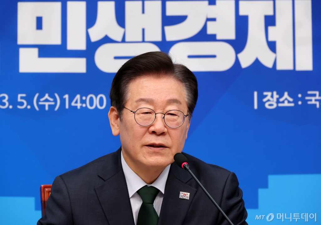 ![[서울=뉴시스] 조성우 기자 = 이재명 더불어민주당 대표가 5일 오후 서울 여의도 국회에서 열린 경제 활성화를 위한 더불어민주당-한국경제인협회 민생경제간담회에서 발언하고 있다. 2025.03.05. xconfind@newsis.com /사진=조성우](https://thumb.mt.co.kr/cdn-cgi/image/f=avif/21/2025/03/2025030608223597605_1.jpg)