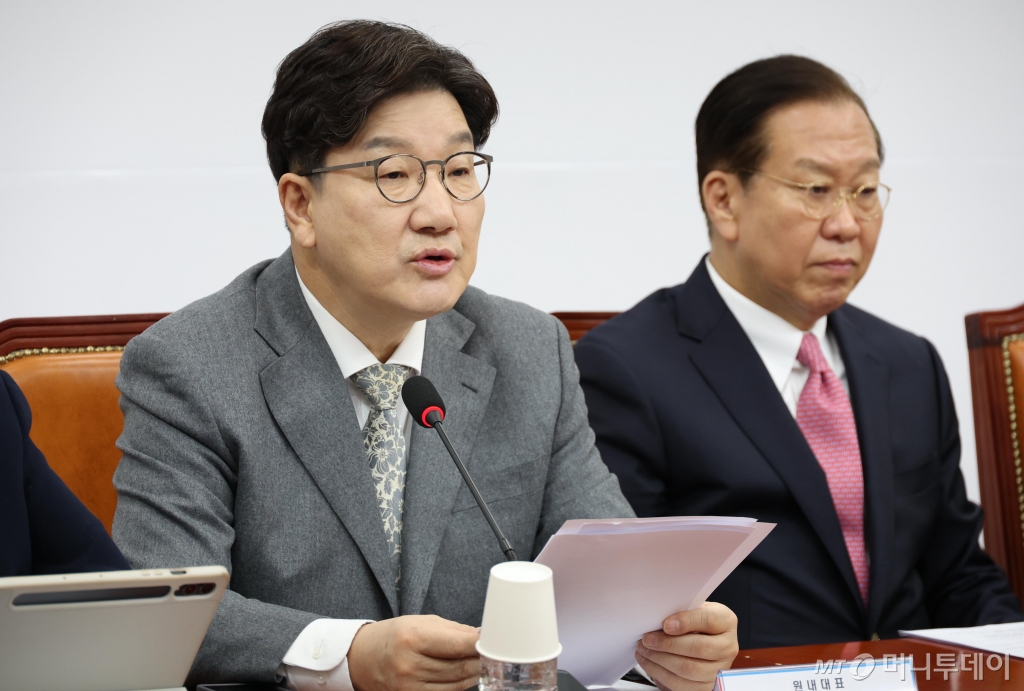 ![[서울=뉴시스] 조성봉 기자 = 권성동 국민의힘 원내대표가 6일 오전 서울 여의도 국회에서 열린 비상대책위원회의에서 발언을 하고 있다. 오른쪽은 권영세 비대위원장. 2025.03.06. /사진=조성봉](https://thumb.mt.co.kr/cdn-cgi/image/f=avif/21/2025/03/2025030609320528661_1.jpg)
