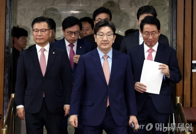 이양수 국민의힘 사무총장은 25일 오전 서울 여의도 국회 본관에서 진행된 원내대책회의에서 "법 앞에 만인이 평등한 만큼 법원은 이재명 대표가 재판에 불출석하면 법에 따라 엄정 조치를 취하라"고 했다.