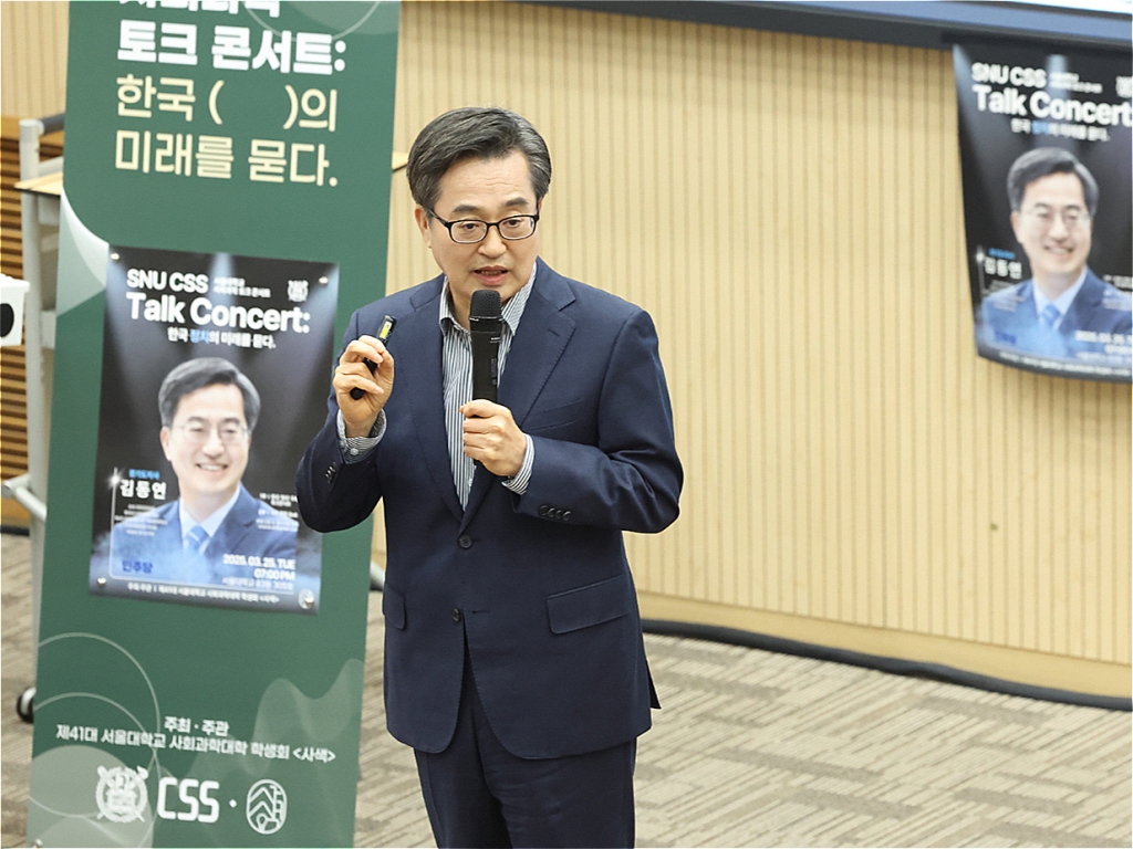 25일 저녁 서울 관악구 서울대에서 열린 '한국 정치의 미래를 묻다' 토크콘서트. 한 학생이 연사로 참여한 김동연 경기도지사에게 "(민주당) 대선 경선에서 이재명 대표와 만나게 되면 경기도지사 업적을 포함해 여러 면에서 비교가 될 것 같다"며 이 대표와 비교해 갖는 강점이 무엇이라고 생각하는지를 물었다.