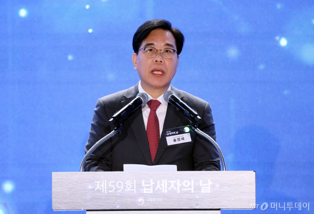 ![[서울=뉴시스] 조수정 기자 = 국회기획재정위원장인 송언석 국민의힘 의원이 4일 서울 중구 동대문디자인플라자에서 열린 제59회 납세자의 날 기념식에서 축사를 하고 있다. 2025.03.04./사진=조수정](https://thumb.mt.co.kr/cdn-cgi/image/f=avif/21/2025/03/2025032813545368302_1.jpg)
