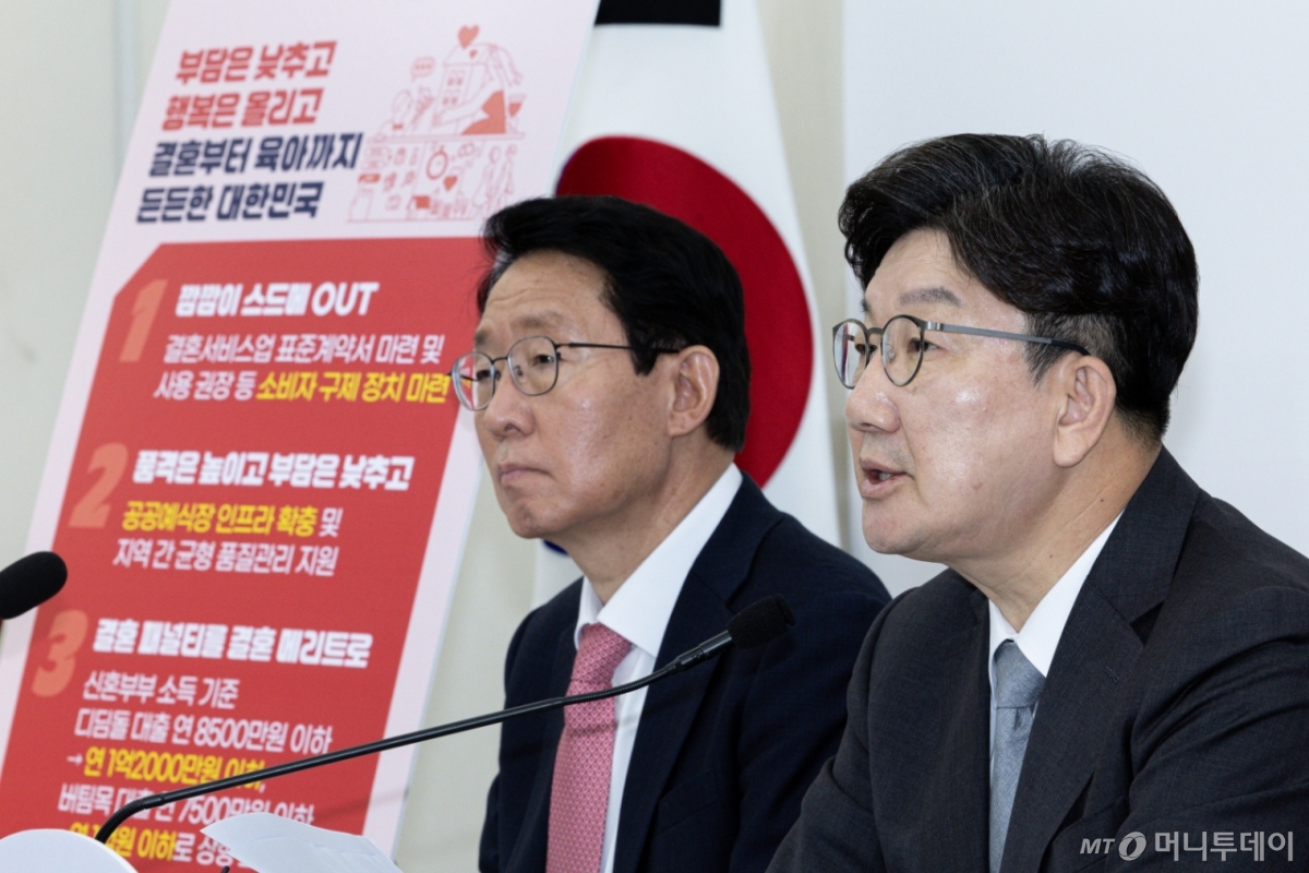 [the300] (서울=뉴스1) 이재명 기자 = 권성동 국민의힘 원내대표가 23일 오전 서울 여의도 국회에서 '부담은 낮추고 행복은 올리고 결혼부터 육아까지 든든한 대한민국' 공약 발표를 하고 있다. 2025.4.23/뉴스1 Copyright © 뉴스1. All rights reserved. 무단 전재 및 재배포, AI학습 이용 금지. /사진=(서울=뉴스1) 이재명 기자 23일 권성동 국민의힘 원내대표 독자들의 PICK! 16살 아들 절친과 성관계한 시장…친동생도 미성년 성범죄자 '폐암 수술' 이혜영, 후유증에 눈 퉁퉁..."건강 회복이 목표" 장윤정 "어머니 은행계좌 돈 다 털렸다" 충격...무슨 일? "살아있냐"…삼전·하닉에 결혼자금 3억 몰빵 공무원 근황