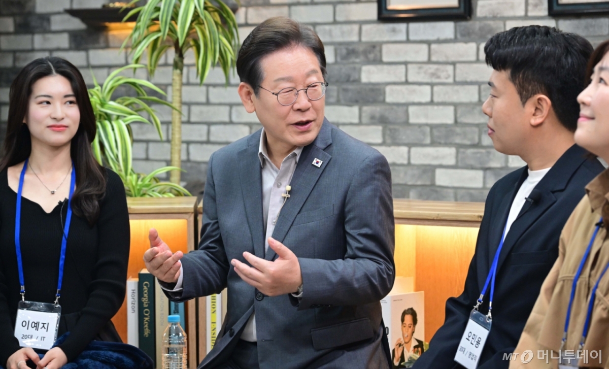 [the300] (서울=뉴스1) 국회사진취재단 = 이재명 더불어민주당 대통령 후보가 30일 저녁 서울 구로구 한 스튜디오에서 열린 슬기로운 퇴근생활 직장인 간담회에 참석해 직장인들의 고충을 듣고 답변하고 있다. 2025.4.30/뉴스1 Copyright © 뉴스1. All rights reserved. 무단 전재 및 재배포, AI학습 이용 금지. /사진=(서울=뉴스1) 국회사진취재단 1일 이재명 더불어민주당 대선 후보. 독자들의 PICK! "네 몸 확인하겠다" 덮친 기획사 대표...고백한 여배우 "ATM 되기 싫다" 집 나간 남편...이혼 뒤엔 "양육비 줄여줘" 장나라 측 "관계자 사망? 지난해 결별한 전 소속사…관련 없다" 제니, 과감한 전신 시스루 샤넬쇼 패션…조니뎁 딸과 '까르르'