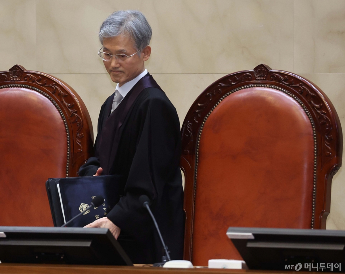 ![[서울=뉴시스] 사진공동취재단 = 조희대 대법원장을 비롯한 대법관들이 1일 서울 서초구 대법원에서 이재명 더불어민주당 대선 후보의 공직선거법 위반 사건과 관련한 전원합의체 선고를 위해 대심판정에 입장하고 있다. 2025.05.01.](https://thumb.mt.co.kr/cdn-cgi/image/f=avif/21/2025/05/2025050115462188188_1.jpg)