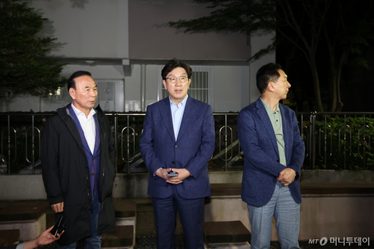 권성동 국민의힘 원내대표와 김기현·박덕흠 의원이 6일 밤 늦게 김문수 국민의힘 대선 후보 자택을 찾았다. 한덕수 무소속 대선 예비후보와의 빠른 단일화를 요청하기 위해서였는데, 김 후보가 집에 들어오지 않아 김 후보를 만나지 못하고 발길을 돌렸다.