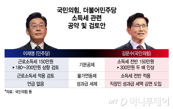 이 밖에 김 후보는 근로·종합소득세 공제액을 현행 150만원에서 300만원으로 늘리겠단 구상도 내놨다. 직장인의 성과급에 대해선 세 부담을 덜어주겠단 공약도 제시했다.