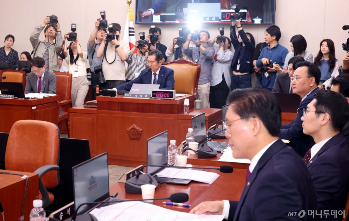![[서울=뉴시스] 조성봉 기자 = 정청래 국회 법사위원장이 14일 오전 서울 여의도 국회에서 열린 법제사법위원회 전체회의에서 의사봉을 두드리고 있다. 입 의혹 진상규명 청문회에서 의원의 질의에 답변하고 있다. 2025.05.14. suncho21@newsis.com /사진=조성봉](https://thumb.mt.co.kr/cdn-cgi/image/f=avif/21/2025/05/2025051413453994636_1.jpg)
