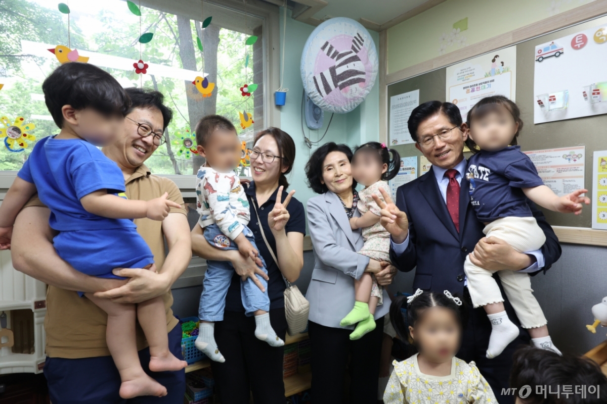 가족과 함께 진행한 어린이집 간담회에서 김 후보는 "국가가 책임지고 키우는 것이 핵심이다. 엄마가 아기 걱정하지 않고 낳고 기를 수 있도록 하는 것이 제 목표"라고도 했다.