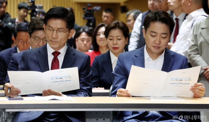 ![[서울=뉴시스] 추상철 기자 = 김문수 국민의힘 대선 후보와 이준석 개혁신당 대선 후보가 19일 오전 서울 중구 서울시청에서 열린 '약자와 동행하는 서울' 토론회에서 자료를 살펴보고 있다. 2025.05.19. /사진=추상철](https://thumb.mt.co.kr/cdn-cgi/image/f=avif/21/2025/05/2025052515552927957_1.jpg)