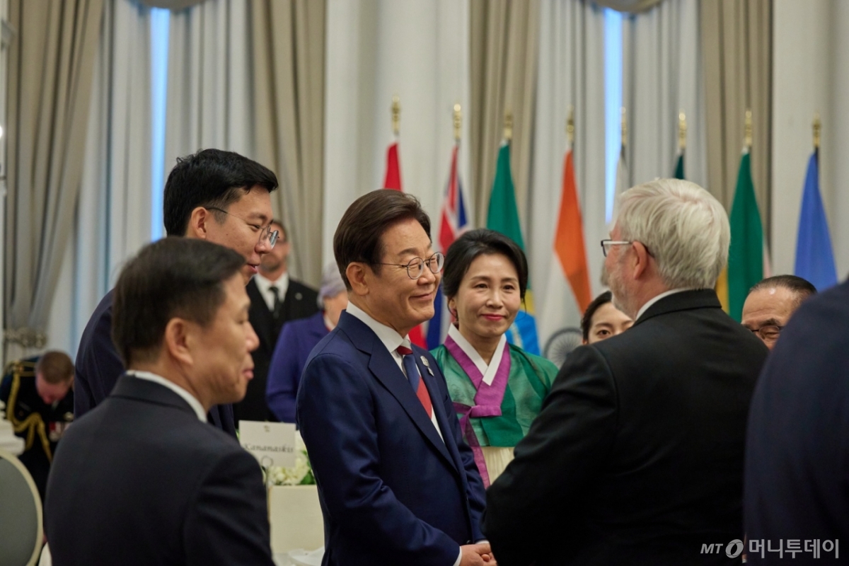 ![[캘거리=뉴시스] 최진석 기자 = 이재명 대통령과 부인 김혜경 여사가 16일(현지 시간) 캘거리 한 호텔에서 열린 다니엘 스미스 앨버타주 수상 주재 G7 초청국 리셉션에 참석하고 있다. (공동취재) 2025.06.17. myjs@newsis.com /사진=](https://thumb.mt.co.kr/cdn-cgi/image/f=avif/21/2025/06/2025061717093849482_1.jpg)