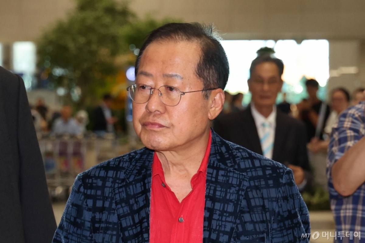 ![[인천공항=뉴시스] 권창회 기자 = 국민의힘 대선 후보 경선에서 탈락한 뒤 정계 은퇴를 선언하고 하와이에 체류했던 홍준표 전 대구시장이 17일 인천 중구 인천국제공항 제1터미널을 통해 귀국하고 있다. 2025.06.17. kch0523@newsis.com /사진=권창회](https://thumb.mt.co.kr/cdn-cgi/image/f=avif/21/2025/07/2025070910361514260_1.jpg)