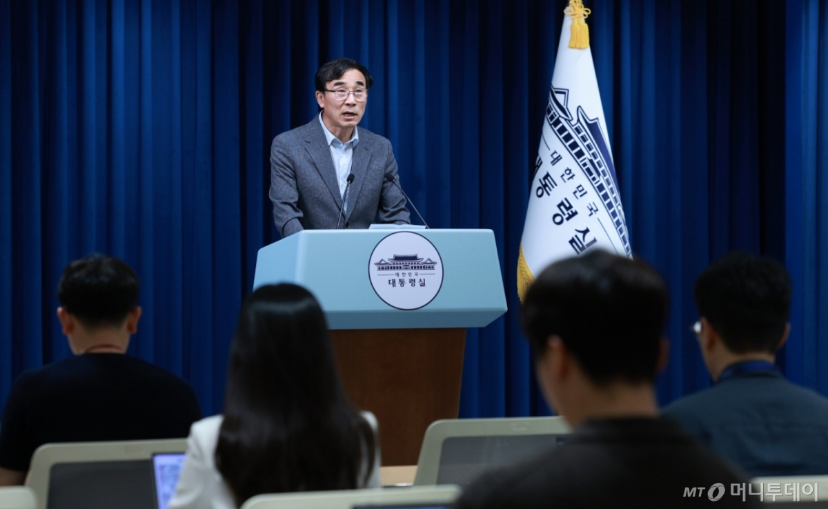 ![[서울=뉴시스] 고범준 기자 = 전성환 경청통합수석이 18일 서울 용산 대통령실 청사에서 청년담당관 관련 브리핑을 하고 있다. 2025.08.18. bjko@newsis.com /사진=고범준](https://thumb.mt.co.kr/cdn-cgi/image/f=avif/21/2025/08/2025081818053764049_1.jpg)
