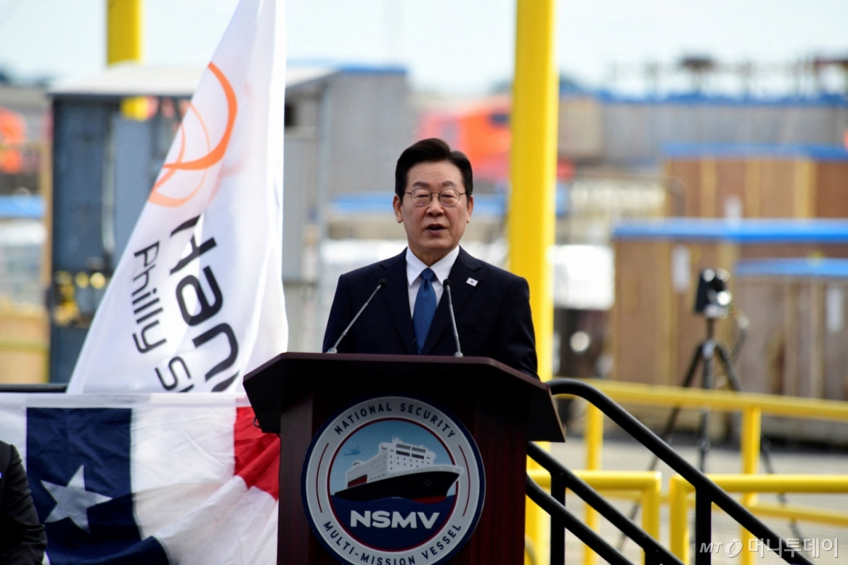 [the300] (AFP=뉴스1) = 이재명 대통령이 26일(현지시간) 미국 펜실베이니아주 필라델피아 한화 필리조선소에서 열린 '스테이트 오브 메인'호 명명식에 참석해 축사를 하고 있다. ⓒ AFP=뉴스1 Copyright © 뉴스1. All rights reserved. 무단 전재 및 재배포, AI학습 이용 금지. /사진=(AFP=뉴스1) 이재명 대통령, 27일 미국 필라델피아 한화 필리조선소. 독자들의 PICK! 유키스 동호 전처 "같이 성매매한 멤버 풀겠다"…카톡 공개 '사생활 논란' 박시후, 가만히 앉아서 억대 수익?...근황에 깜짝 "배우가 쿠팡 뛴다" 임주환 목격담...차태현 "소속사 지원 없다" 김애경, 50대에 결혼한 남편과 별거…"술 취하면 엉망"
