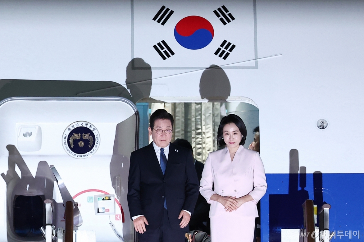 ![[성남=뉴시스] 고범준 기자 = 일본·미국 순방 일정을 마치고 귀국한 이재명 대통령이 28일 경기 성남 서울공항에서 김민석 국무총리와 악수하고 있다. 2025.08.28. bjko@newsis.com /사진=고범준](https://thumb.mt.co.kr/cdn-cgi/image/f=avif/21/2025/08/2025082803225981124_2.jpg)