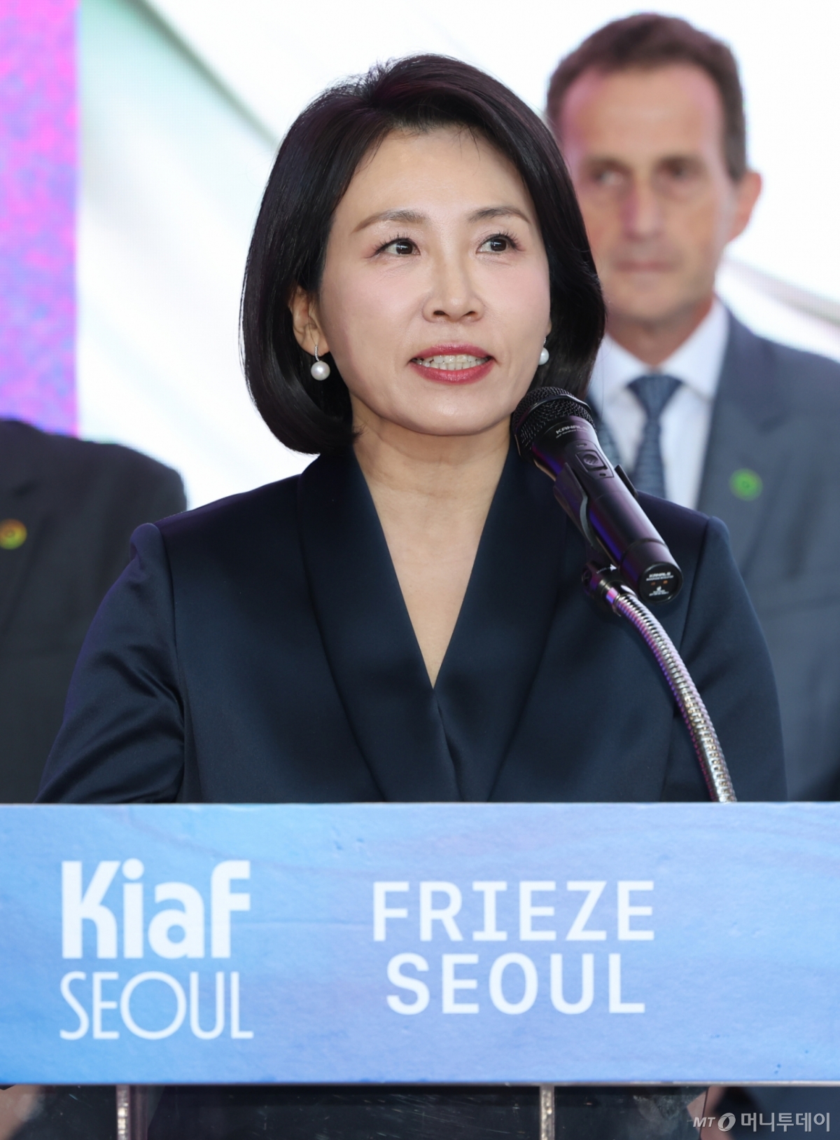![[서울=뉴시스] 황준선 기자 = 이재명 대통령 부인 김혜경 여사가 3일 서울 강남구 코엑스에서 열린 국내최대 아트페어 '키아프 서울(Kiaf SEOUL)'과 세계 3대 아트페어 '프리즈 서울(FRIEZE SEOUL)' 개막식에 참석해 축사를 하고 있다. 2025.09.03. hwang@newsis.com /사진=황준선](https://thumb.mt.co.kr/cdn-cgi/image/f=avif/21/2025/09/2025090317104038251_1.jpg)
